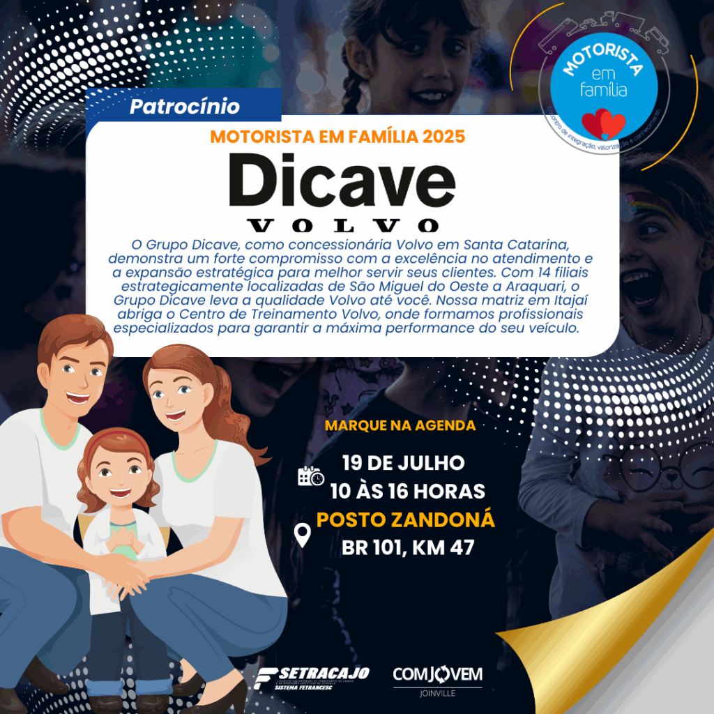 Em 2025, o Motorista em Família mais uma vez conta com o patrocínio PRATA da Dicave Volvo, reforçando o compromisso da marca com segurança, inovação e valorização do setor de transporte. O Motorista em Família é um evento que celebra a dedicação e a importância dos profissionais que movem o Brasil.