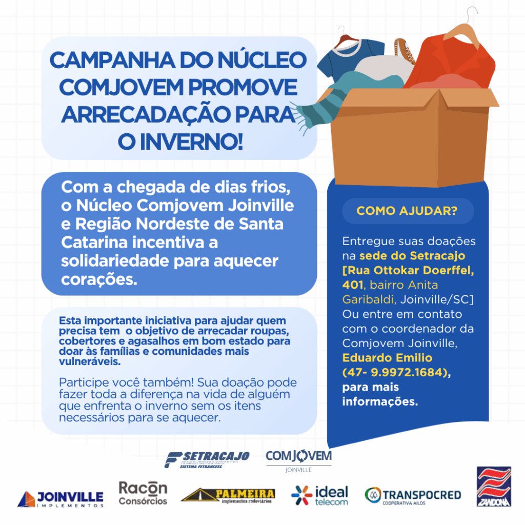 Com a chegada de dias frios, o Núcleo Comjovem Joinville e Região Nordeste de Santa Catarina incentiva a solidariedade para aquecer corações.