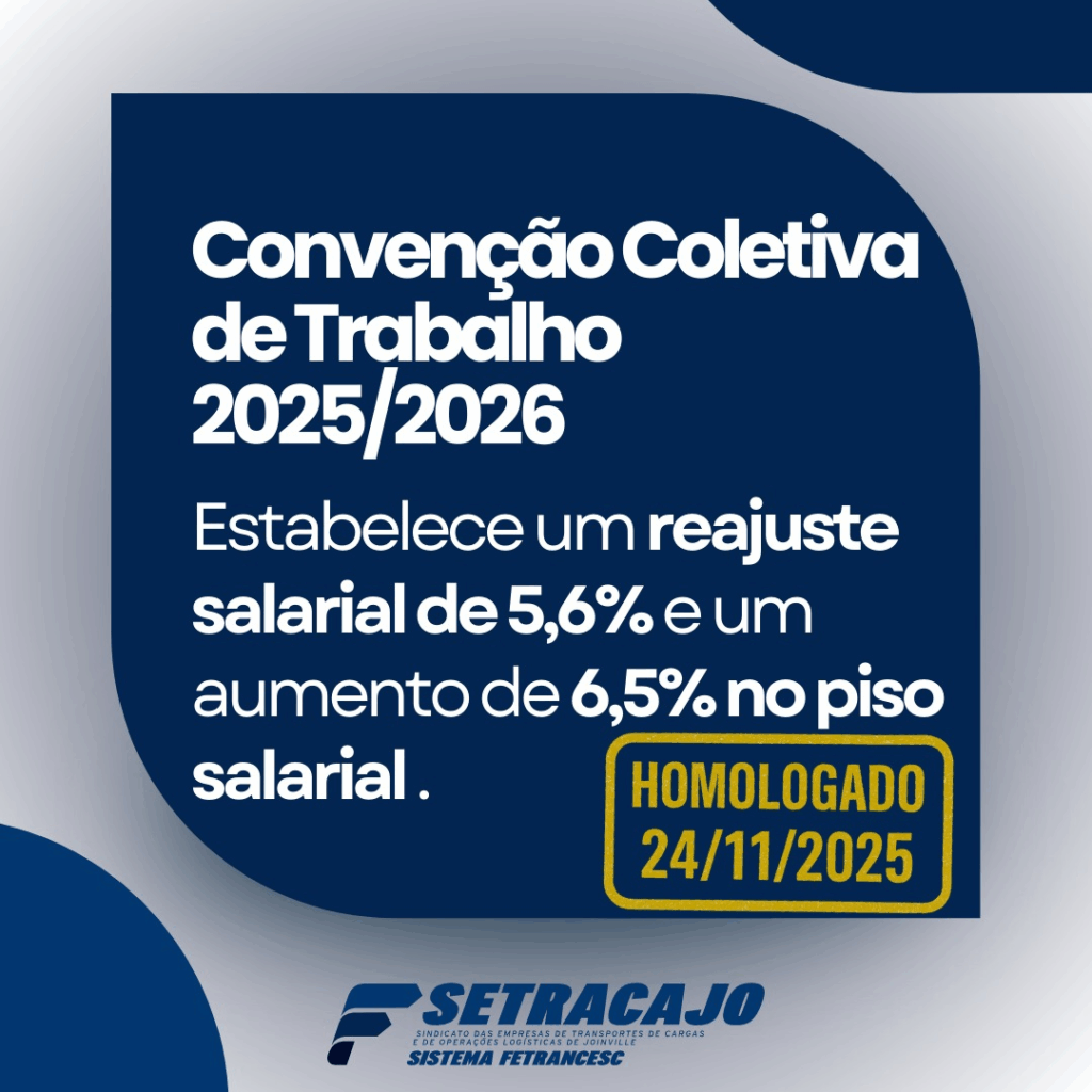 Informamos que foi formalizada a Convenção Coletiva de Trabalho (CCT) para o período de 2025/2026, que rege os direitos e obrigações das categorias profissionais do setor de transporte de cargas nas regiões mencionadas.