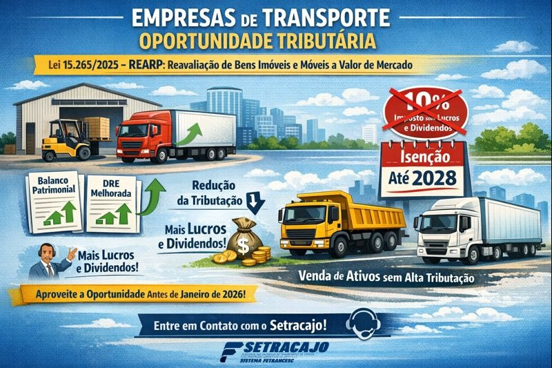 A Lei n. 15.265/2025, ao instituir o REARP e permitir a atualização, a valor de mercado, de bens imóveis e móveis, trouxe uma relevante oportunidade tributária para as transportadoras: melhorar o balanço patrimonial e a DRE, reduzir significativamente a tributação de ganho de capital na venda de ativos imobilizados já depreciados e, ainda, aumentar o valor a ser distribuído aos sócios até o final de 2028 com isenção da nova tributação de 10% sobre lucros e dividendos (tributação das altas rendas – Lei n. 15.270/2025).
