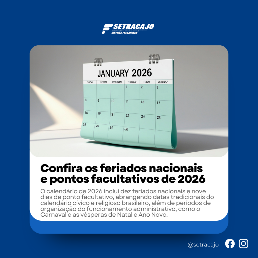 Setracajo > Notícias e Eventos > Feriados nacionais e pontos facultativos de 2026