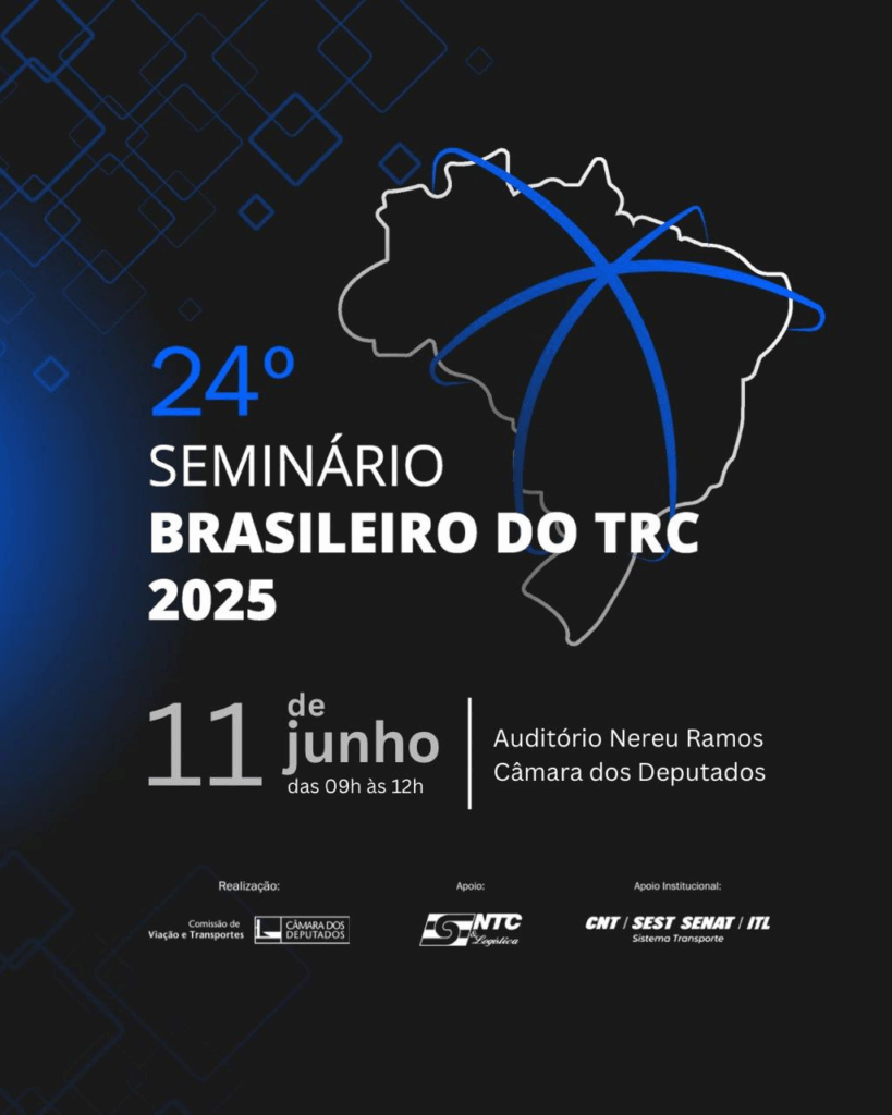 No dia 11 de junho de 2025, das 9h às 12 horas, será realizada a 24ª edição do Seminário Brasileiro do Transporte RODOVIáRIO de Cargas, no Auditório Nereu Ramos, da Câmara dos Deputados, em Brasília (DF).