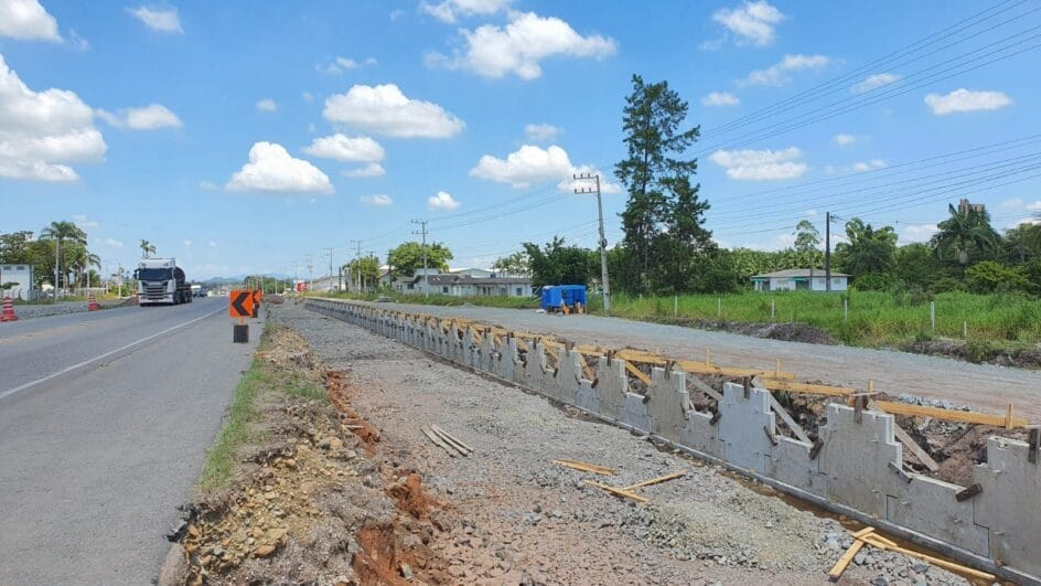 As obras começaram em 2018 pelas marginais, mas houve atrasos em liberação de áreas e outra frente de trabalho foi aberta em São Francisco do Sul, no contorno (novo traçado). Em 2020, começaram a chegar as peças pré-moldadas e a construção da estrutura iniciou em 2021. O plano era entregar o viaduto e dois quilômetros duplicados. A expectativa não foi cumprida e, no final de 2022, as obras estavam paradas nas duas frentes, para a revisão do projeto.
